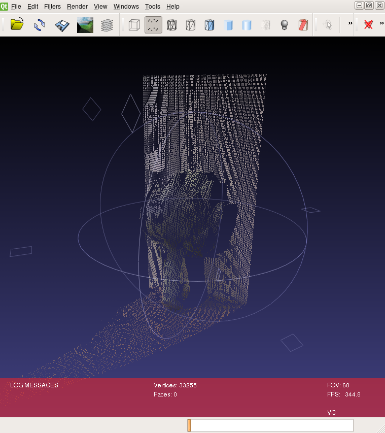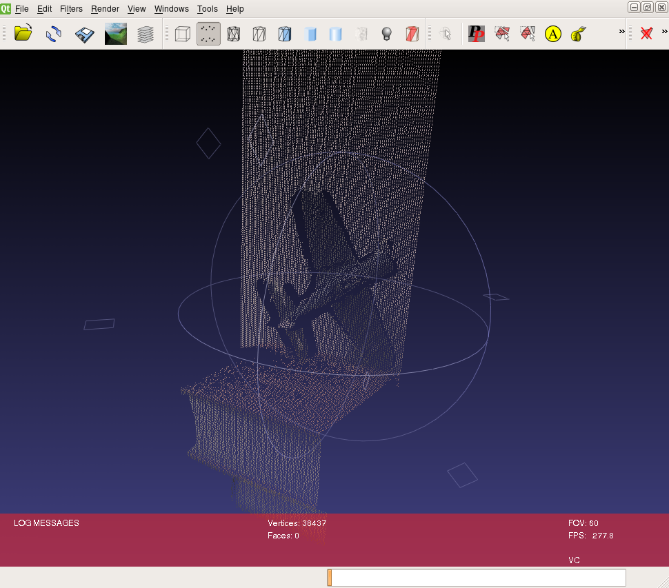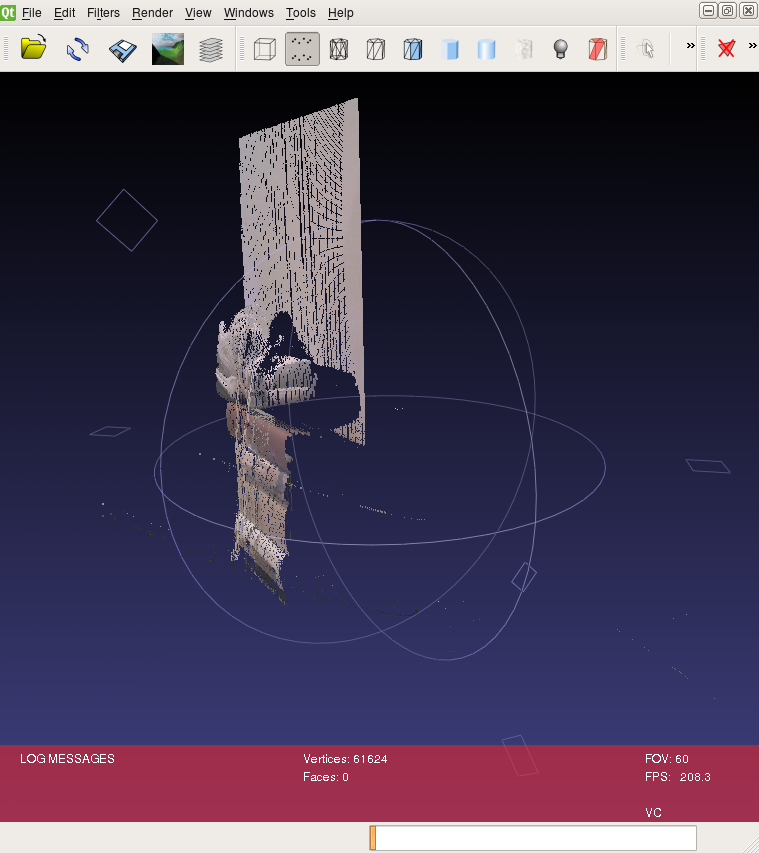 We are now making high-resolution point clouds with much better accuracy and with less noise! Here are some of our latest scans. We are still working out a few calibration issues so the aspect ratios and ground-planes are not perfect yet, but we'll get there.